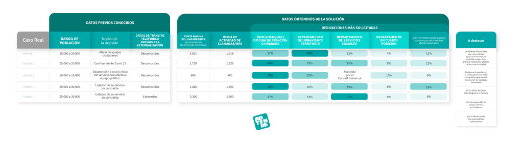 Així que us mostraré dades reals del que ocorre quan l’administració, decideix fer alguna cosa per a superar el col·lapse telefònic, i garantir a la seva ciutadania, que la seva crida serà resposta ràpidament. En tots aquests casos la solució per la qual ha apostat cada ens ha estat, externalitzar el servei. Encara que no és l’única (ho parlem més endavant).